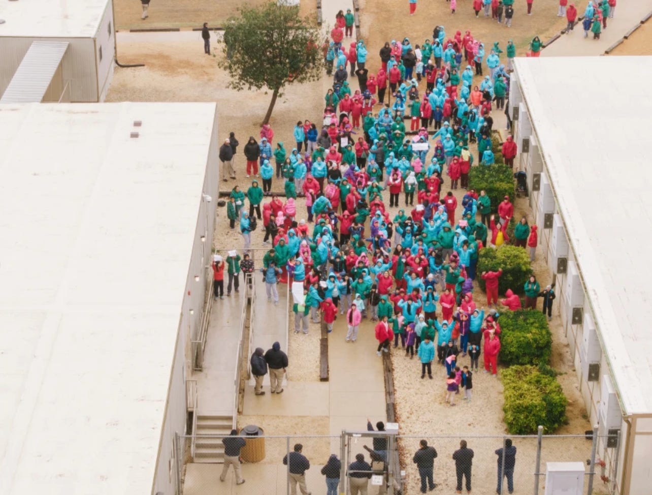 Dilley is showing that ICE’s ability to hide conditions in detention centers can be broken. Drones, flying above the facility, captured the protesting families gathered in the facility’s courtyard, and detainees have started getting their message out.