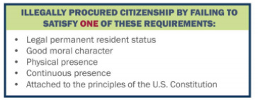 The statute also describes two less-relevant grounds for denaturalization. Less than honorable discharge from the military, for immigrants who gained citizenship through wartime military service, and the §340(a) Proviso, a remnant of the Red Scare designed to denaturalize communists, socialists, and anarchists.